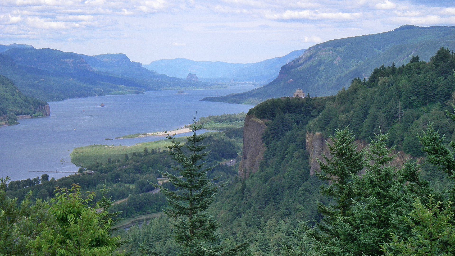 Next, we visit the historic Vista House at Crown Point. This iconic rest stop provides a breathtaking thirty-mile view of the Columbia River and exhibits showcasing historic photography and native wildflowers.